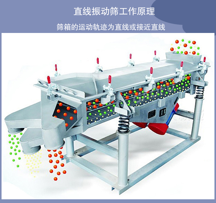 直線振動篩篩箱的運動軌跡為直線或接近直線,它有兩個軸,所以又稱雙軸振動篩。直線振動篩水平或傾斜安裝,這類振動篩結(jié)構(gòu)緊湊,運行平穩(wěn),被廣泛用于各類物料的脫水、脫泥、脫介,也用于中、細粒度物料的干式和濕式分級作業(yè)。我廠生產(chǎn)的直線振動篩種HZSF型號就是直線振動篩代表性的產(chǎn)品。