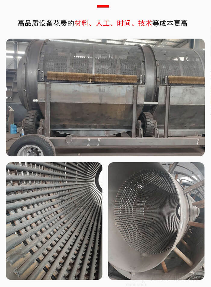 設備品質是決定移動滾筒篩價格的主要因素之一,質量越好的設備做工更精細,選材更用心,所以花費的材料、人工、時間、技術等成本更高,其市場價格則會更高,成本自然而然就更高,其價格也會更貴,但是后期使用中效果(包括、、產(chǎn)量等方面優(yōu)勢)也會更顯著,帶給用戶的利潤價值更高。